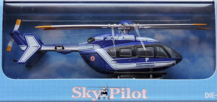 15,00 € Marque : Sky Pilot Matière : métal Echelle : 1/100 Dimensions du socle : 14 cm x 4 cm Dimensions de l’hélicoptère : 11 cm Diamètre des pales : 11 cm NORME...